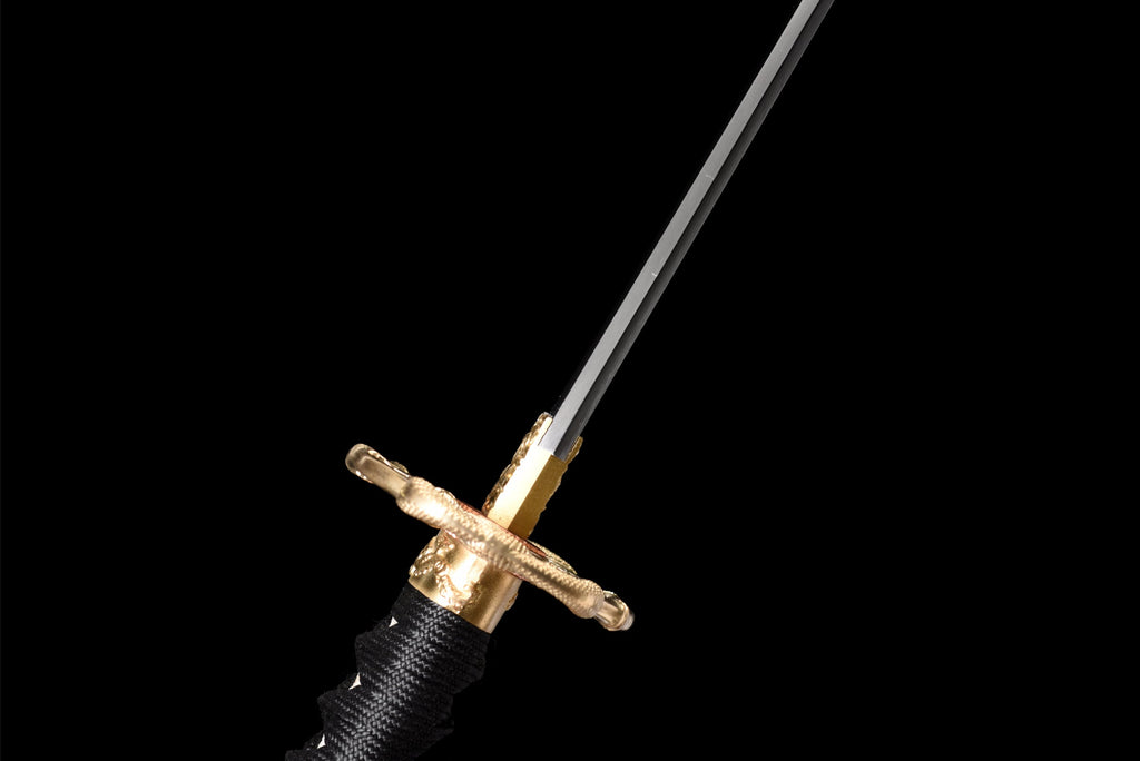 Deze "Ryū no Hōkō" katana onderscheidt zich door zijn superieure kwaliteit T10-staal, vervaardigd met een fijn vertinde Hamon die zijn delicatesse en duurzaamheid benadrukt. Elk onderdeel is geselecteerd op kwaliteit en authenticiteit, wat resulteert in een zwaard van uitzonderlijke schoonheid en functionaliteit.