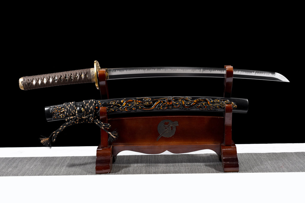 Lemmet : Gemaakt van T10-staal. Het gepolijste oppervlak en Hamon weerspiegelen ambachtelijke precisie en dodelijke efficiëntie.