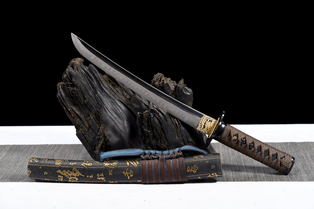 De Kurogane Tantō (黒金短刀) is een meesterlijk vervaardigd Japans kort zwaard, nauwkeurig gesmeed en doordrenkt met traditionele kunst. Compact maar krachtig, werd de tantō van oudsher door samoerai gedragen als reservewapen en gewaardeerd om zijn veelzijdigheid in gevechten van man tot man.
